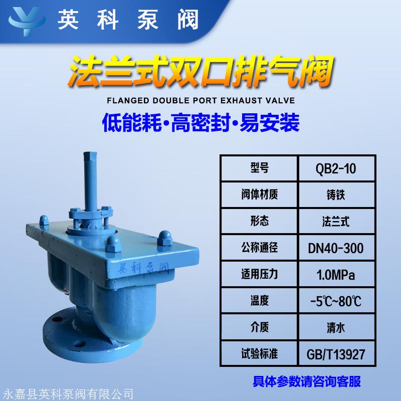 1.法兰双通自动排气阀qb2-10,可扫除管道中的气体,减低阻力,节约碳源。
