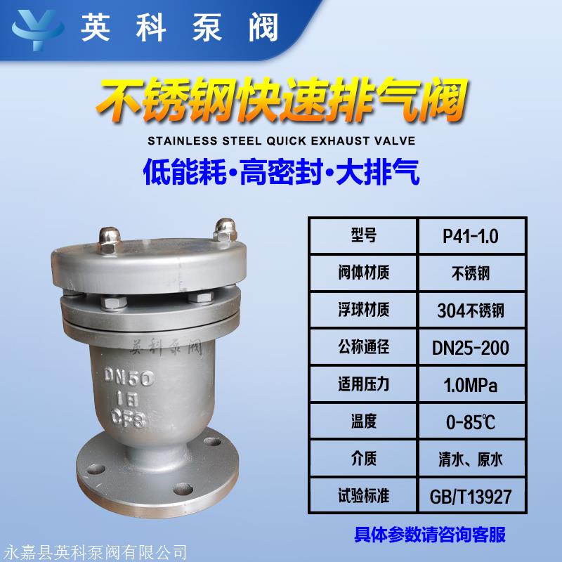 快速排气阀P41X法兰不锈钢用以压力输送水管的吸入和排出。