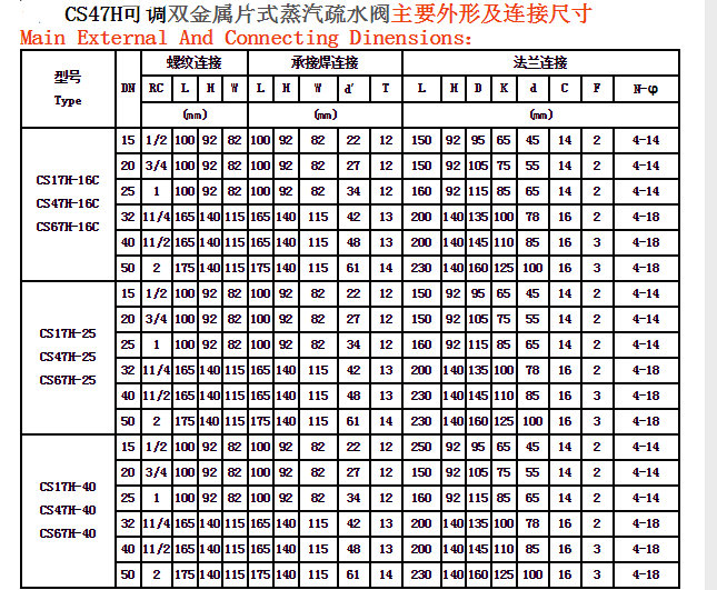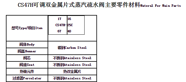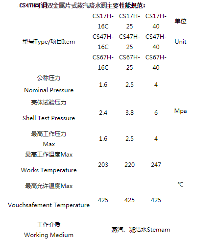 产品详情:CS47H可调式双金属疏水阀主要特性: