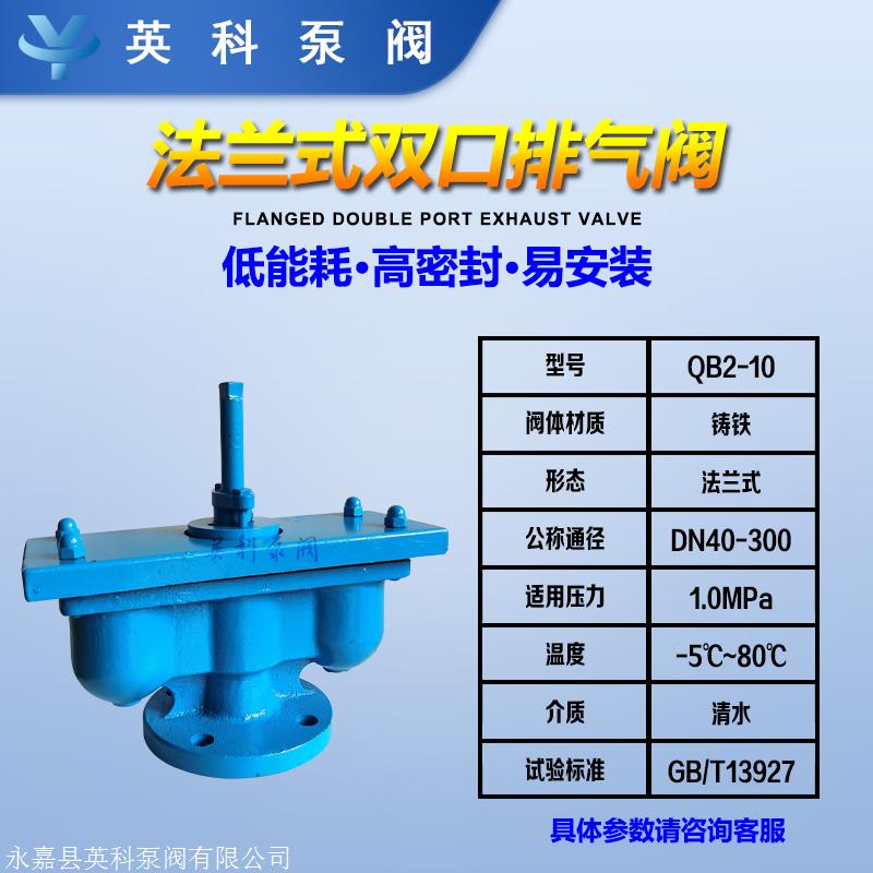 法兰双口脱阀QB2,适用于工业介质为水的管道,作为一种迅速除去管道中气体的设备,可提高输水装置的效率并保障管道不变形和不裂缝。装置。
