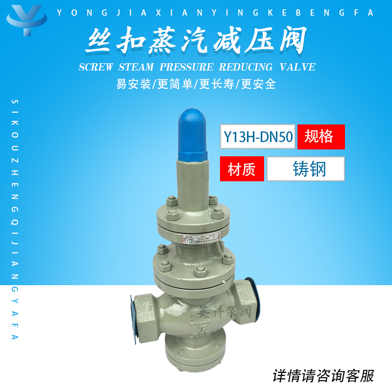 主要产品主要用以蒸汽管道中以降低压力并稳定。减压阀的工作原理是通过阀门中流道对河水的局部阻力来降低水压。水压降的范围可通过连接阀瓣的隔膜或活塞两侧进出口之间的水压差自动调节。碳钢蒸汽减压阀y43hDN25