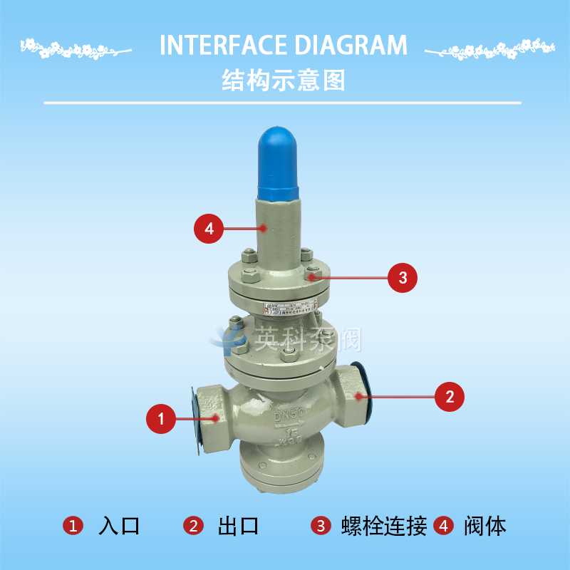 该系列减压阀是先导活塞式减压阀,由主阀和导阀两部分组成。主阀主要由阀座,主阀盘,活塞,弹簧等部分组成。@主要由阀座,阀盘,隔膜,弹簧,调节弹簧等部分组成,出口压力是通过调节弹簧压力来设定的,隔膜是用来感应出口压力的变化,先导阀是开启和关闭的。闭合驱动活塞,调节主阀节流部分的流通面积,实现减压稳定的功用。