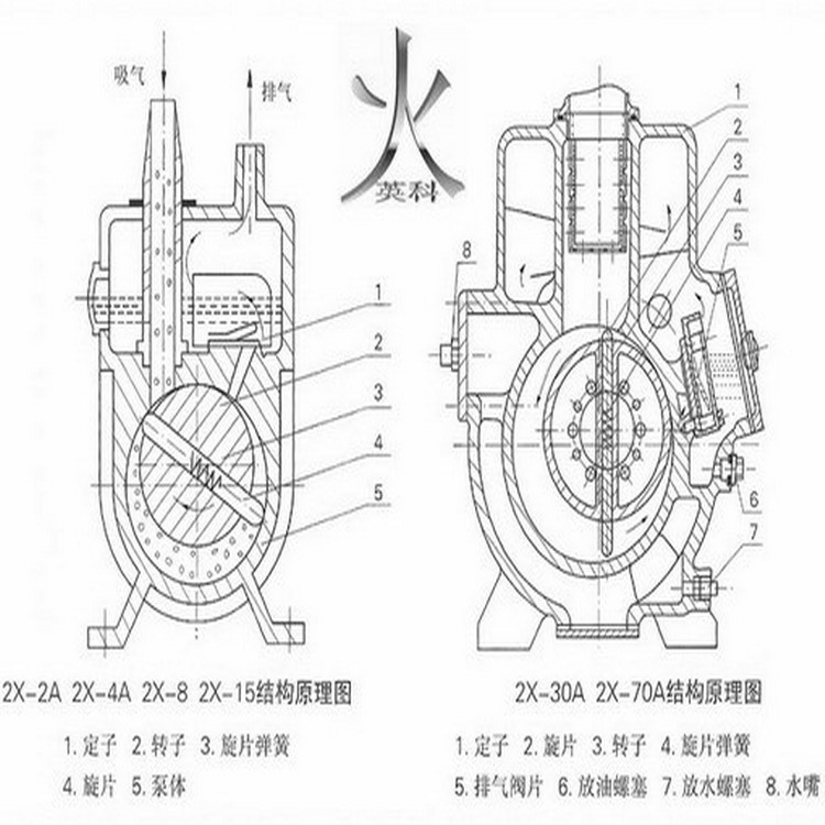 4.2x两段式旋转叶片真空泵的构造示意图:
