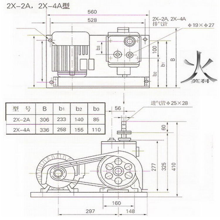 5.2x-2a,2x-4a两级旋转叶片真空泵安装尺寸: