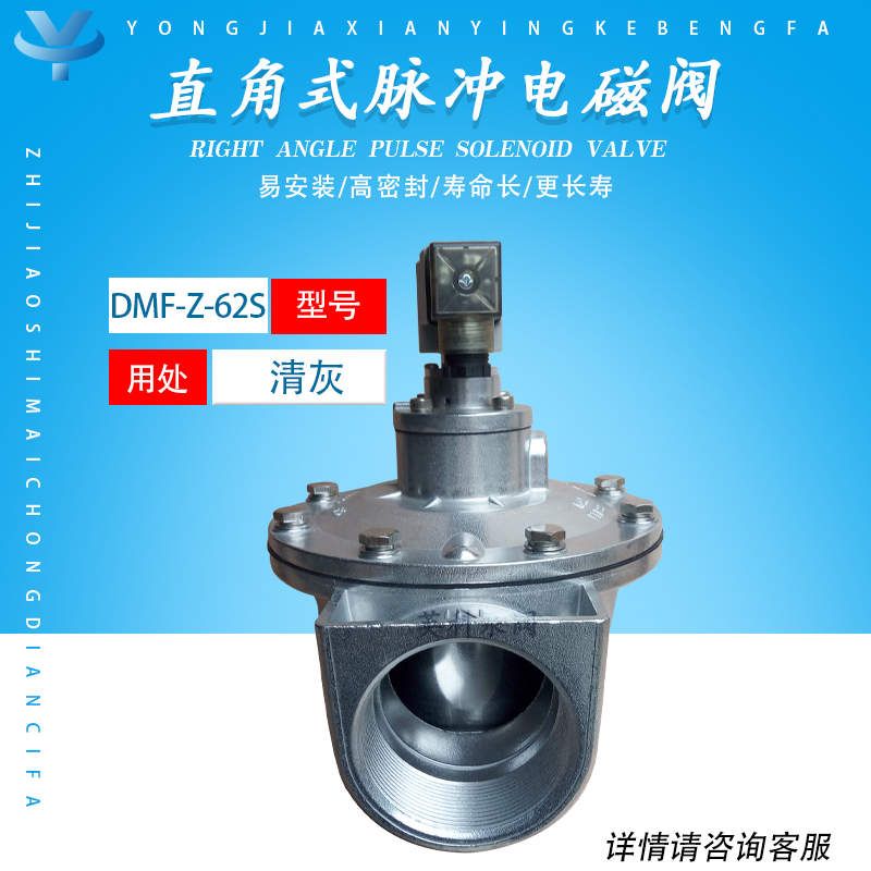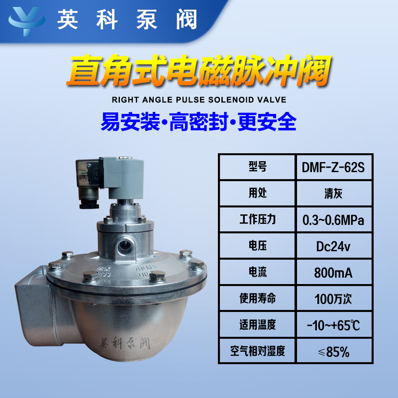 电磁脉冲阀(也称作隔膜阀)是脉冲袋式除尘式除尘器青灰喷射系统的压缩空气“开关”。在脉冲注入控制器的输出信号的控制下,滤袋诼排喷有绿灰,以将集尘器的负力维持在设定范围内,以保证集尘器的处理能力和效率。DMF-Z型电磁脉冲阀是直角阀,进,出口之间的夹角为90°,适用于隼气筒与除尘器的吹管的安装和连接。空气很平滑,可以提供满足要求的绿色和灰色空气脉冲。