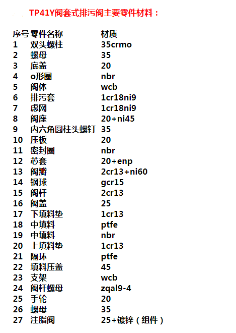 2.液阀套式排污阀TP41Y炭钢法兰,采用双密封(硬密封和软密封),使密封可靠,硬质合金盖可以更耐空气侵蚀和磨损,双密封可以在高压气体介质条件下实现零泄漏阀门寿命长。