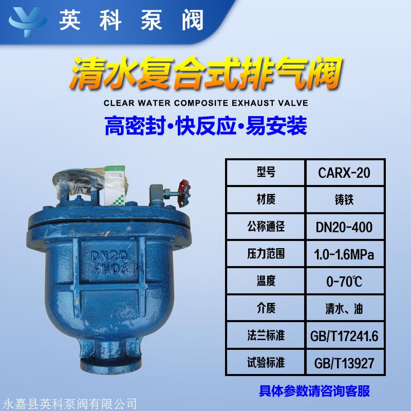 2.净水复合排气阀高密封生铁CARX,安装在泵的出口或配水管道中,以去除管道中积聚的大量空气,以提高水管和水的效率。泵,并且一旦管道中出现负压,此阀就可以很快吸入空气,以维持由于负压引致的管路损坏。