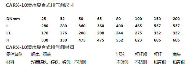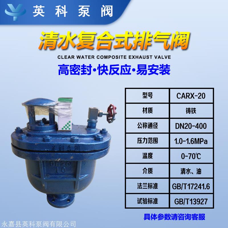 1.净水复合排气阀是铸铁高密封CARX,它是桶形阀体,内部有不锈钢浮子和塞子。