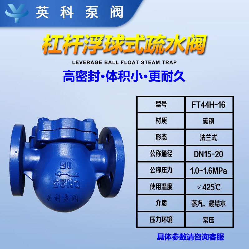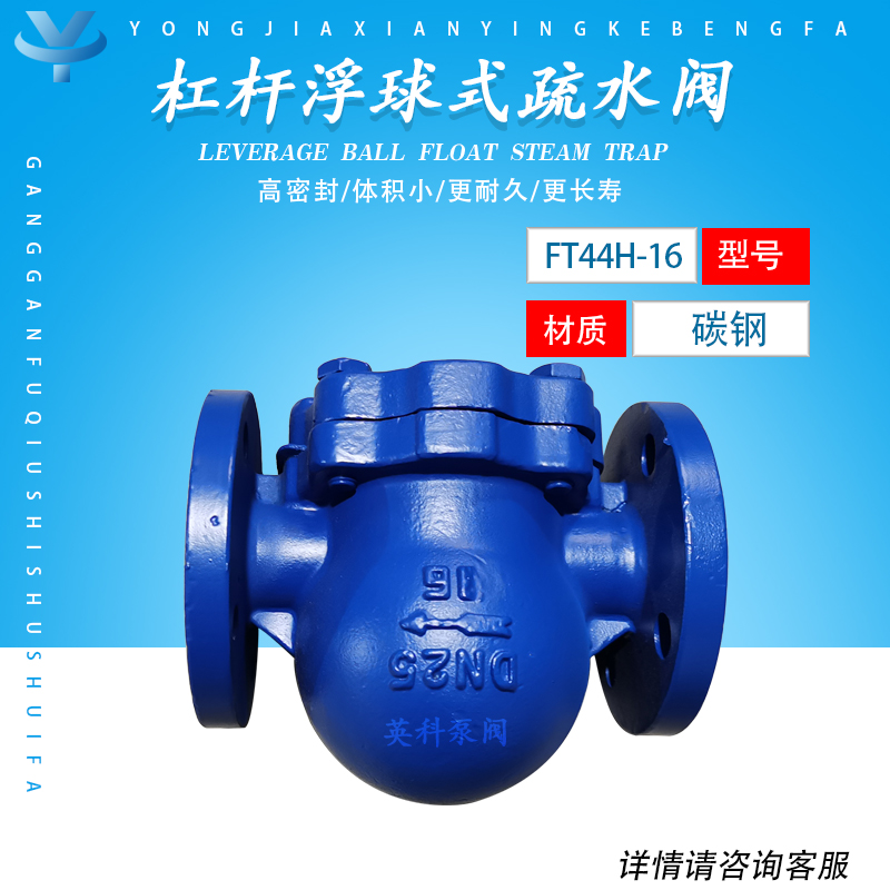 杠杆浮球疏水阀FT44H,这种超大排量疏水阀,在整个工作压力范围内,无须调节和更换内部组件,可以全然扫除大量可疑水。排水过冷度可达到0℃,尤为是适用于有大量可疑水的工作场合。
