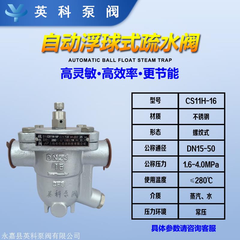 浮球式疏水阀CS11H,根据浮力原理,阀体内的浮球随着水位的变化而上下移动,从而实现阀的开闭,即起到排汽,堵水的功用蒸汽。