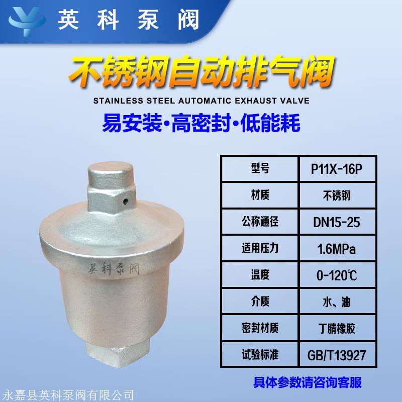 2.不锈钢排气阀P11X在安装过程中与截止阀一同安装,因此当需拆毁排气阀展开维护时,系统可以密封并且水不会流出;