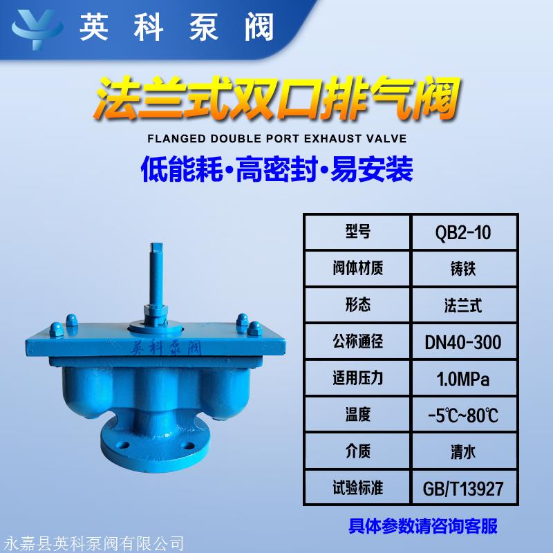 1.双通排气阀QB2可以去除管道中的气体,减低阻力并节约碳源。
